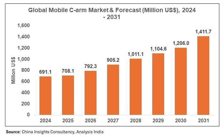 According to China Insights Consultancy, the Global Mobile C-arm Market was valued at US$ 691.1 million in 2024 and is projected to reach US$ 1,411.7 million by 2031. This consistent growth trajectory reflects increasing surgical volumes and expanding healthcare infrastructure across developed and emerging economies. As hospitals modernize operating rooms and integrate digital imaging systems, the Global Mobile C-arm Market continues to strengthen its strategic importance within the broader medical imaging ecosystem. While mobile C-arm systems are primarily used for intraoperative imaging, diagnostic applications are expanding through the global mobile DR system market, creating a comprehensive digital imaging ecosystem.
